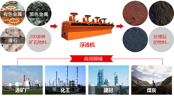 應(yīng)用范圍:主要用于選別銅、鋅、鉛、鎳、金等有色金屬,也可以用于黑色金屬和非金屬的粗選和精選。