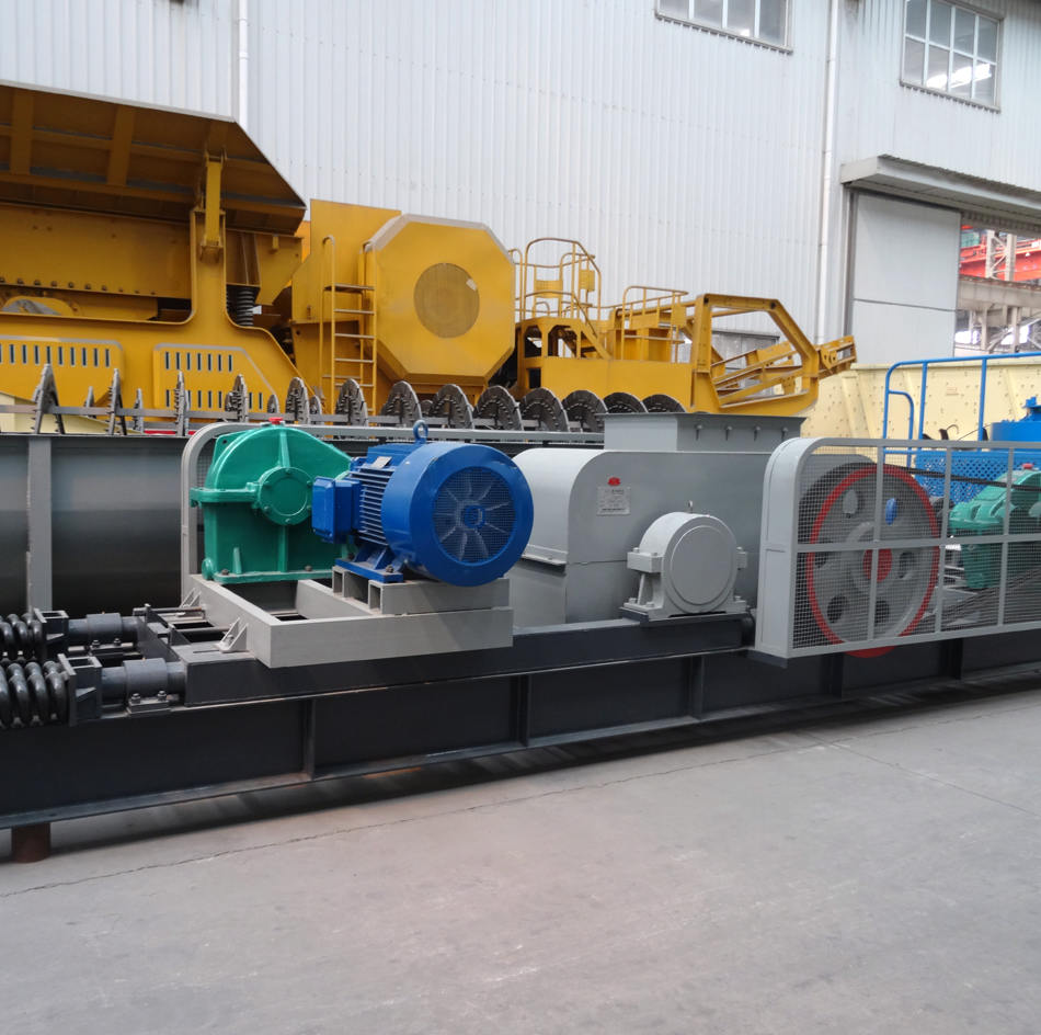 破碎輥齒采用特殊螺旋排列,既便于符合粒度要求的物料排出,又使齒輥同時(shí)受力的輥齒數(shù)量減少,有利于破碎大塊物料。同時(shí)利用齒輥與襯板和顎體的雙重作用實(shí)現(xiàn)對(duì)物料的破碎,減少輪齒工作量,提高破碎效率,延長(zhǎng)整機(jī)使用時(shí)間。