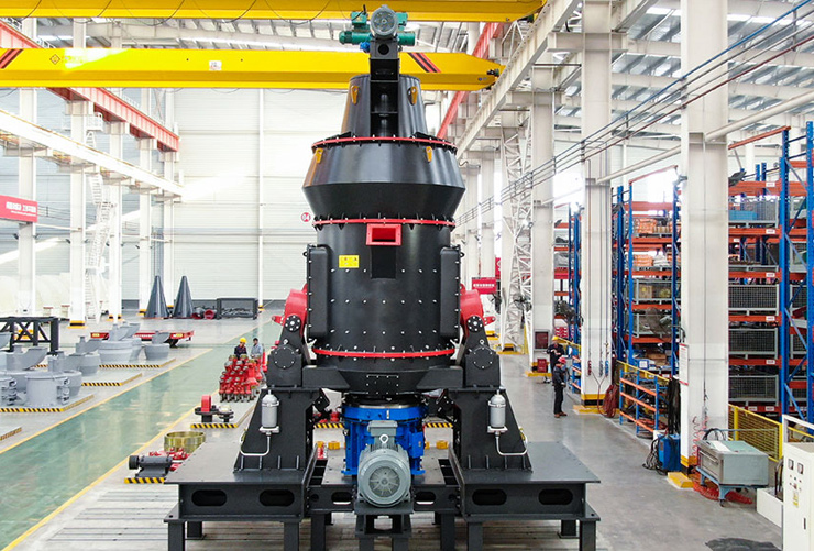 主電機(jī)通過(guò)減速機(jī)帶動(dòng)磨盤轉(zhuǎn)動(dòng),固定的磨輥沿磨盤滾道自轉(zhuǎn)。物料從下料口落在磨盤中央,在離心力的作用下,物料從磨盤中央向邊緣勻速移動(dòng),經(jīng)過(guò)粉磨滾道時(shí),受到磨輥的碾壓,碾磨力由液壓加載系統(tǒng)提供,大塊物料直接被壓碎,細(xì)粒物料受擠壓后形成料床進(jìn)行粒間粉碎。烘干與粉磨同時(shí)進(jìn)行,一次熱風(fēng)通過(guò)風(fēng)環(huán)均勻進(jìn)入磨盤周圍,將經(jīng)過(guò)輾磨從磨盤上切向甩出的粉碎物料烘干并輸送到上部選粉機(jī)處,在轉(zhuǎn)子葉片的作用下,粗顆粒重新回到磨盤上粉磨(內(nèi)循環(huán)),合格的細(xì)粉隨氣流一起出磨,被系統(tǒng)集粉器收集,即為成品;少部分難粉碎且一次風(fēng)吹不起的較大顆粒、雜質(zhì)等通過(guò)風(fēng)環(huán)跌落至磨機(jī)下部一次風(fēng)室被刮料裝置排出機(jī)外,或經(jīng)輸送設(shè)備由進(jìn)料口進(jìn)入立磨重新粉磨(外循環(huán))。